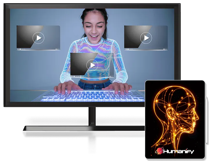 At its core, Humanify uses Artificial Intelligence to analyze text input, select the best avatar and voice, and produce a high-quality AI video that looks like a real human presentation.